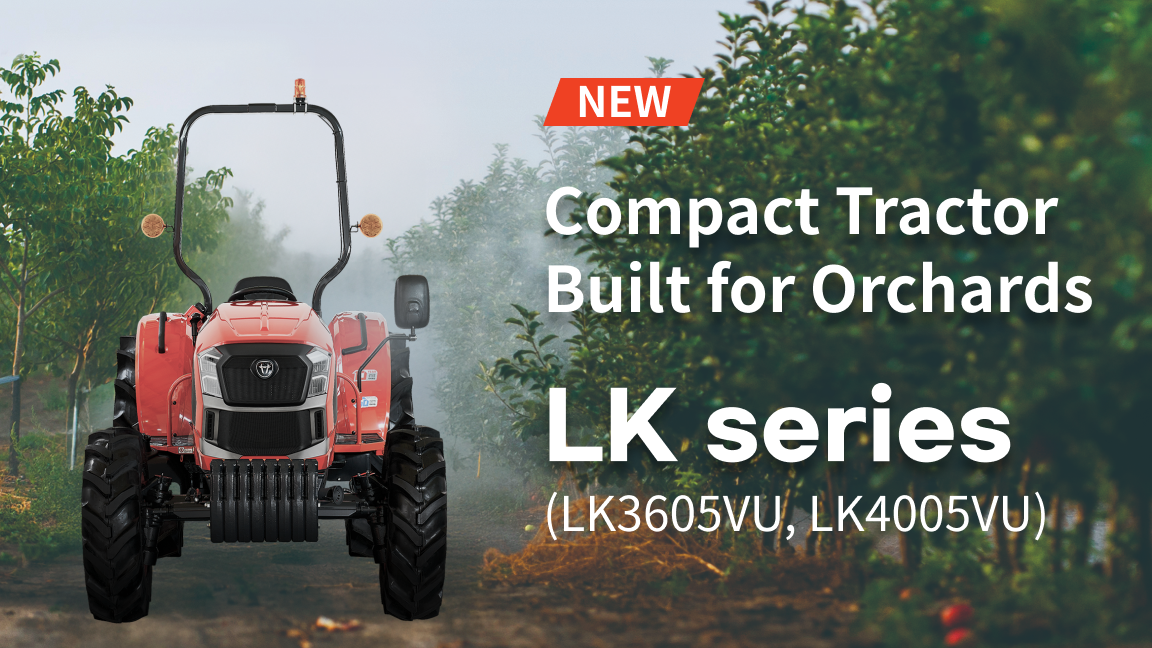 The new LK series is designed specifically around the working conditions and usage patterns of orchard farms. To support operations such as mowing, branch shredding, and spraying while navigating between trees, the tractors feature a compact body measuring 3.26 meters in length and 2.4 meters in height. They offer best-in-class minimum ground clearance of 290 mm, ensuring smoother obstacle clearance and improved maneuverability in tight orchard rows. When fitted with narrow orchard tires, the tractors deliver strong mobility even in confined working environments.